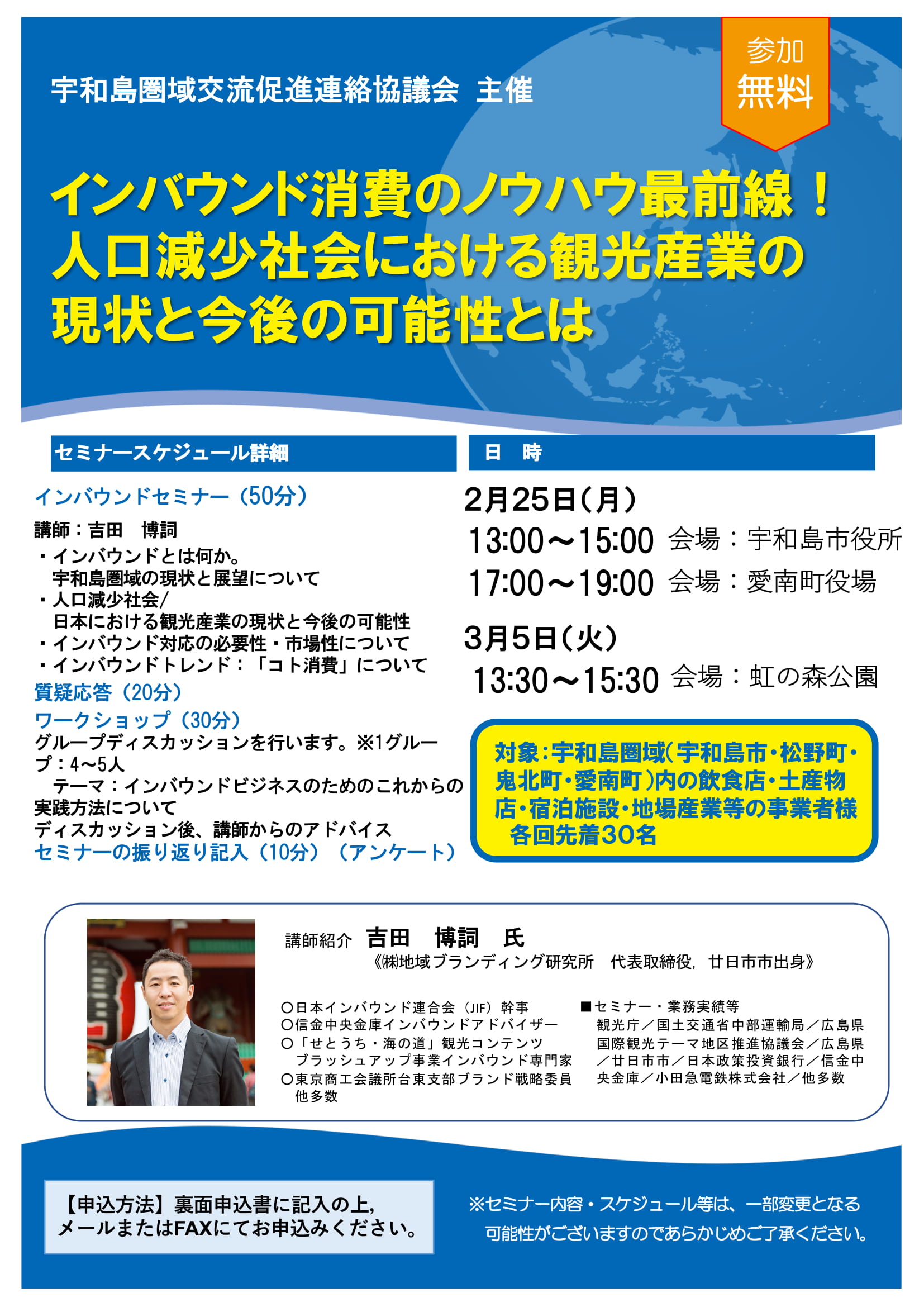 ◆ 「セミナー 『インバウンド消費のノウハウ最前線!人口減少社会における観光産業の現状と今後の可能性とは』」_(2月25日(月))